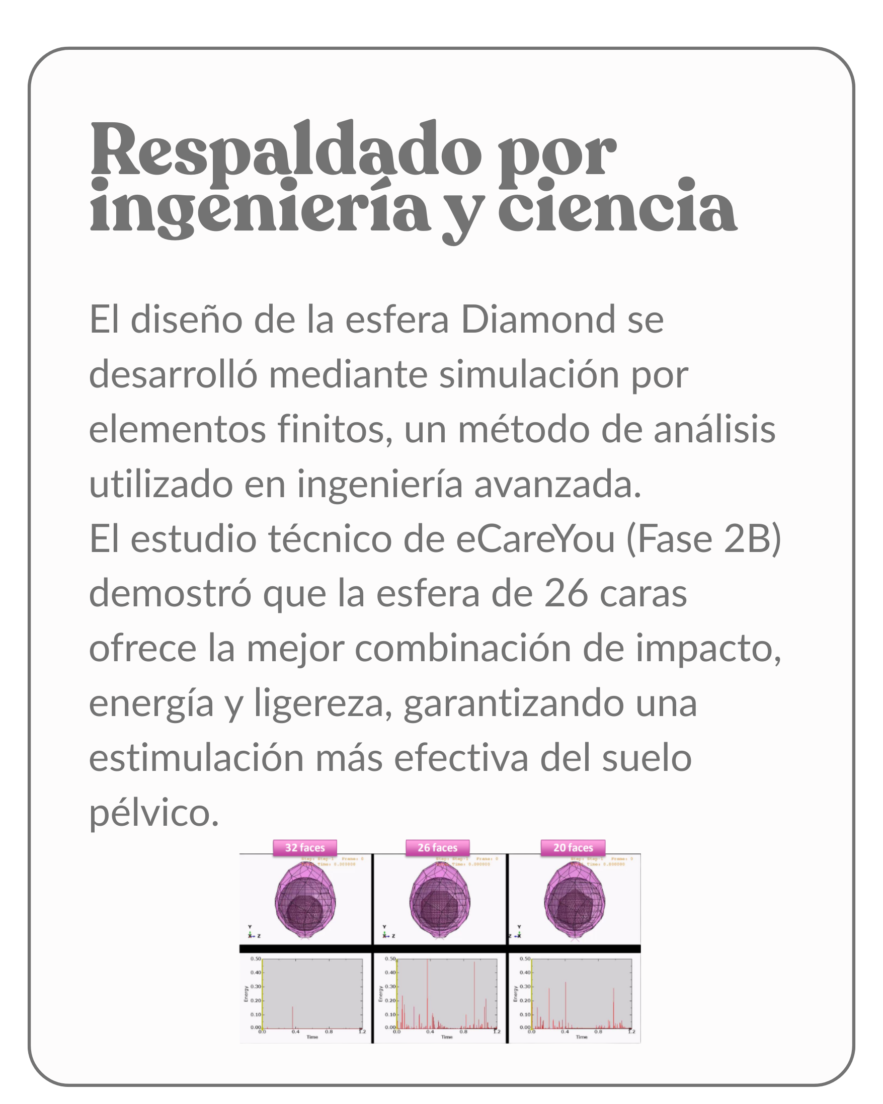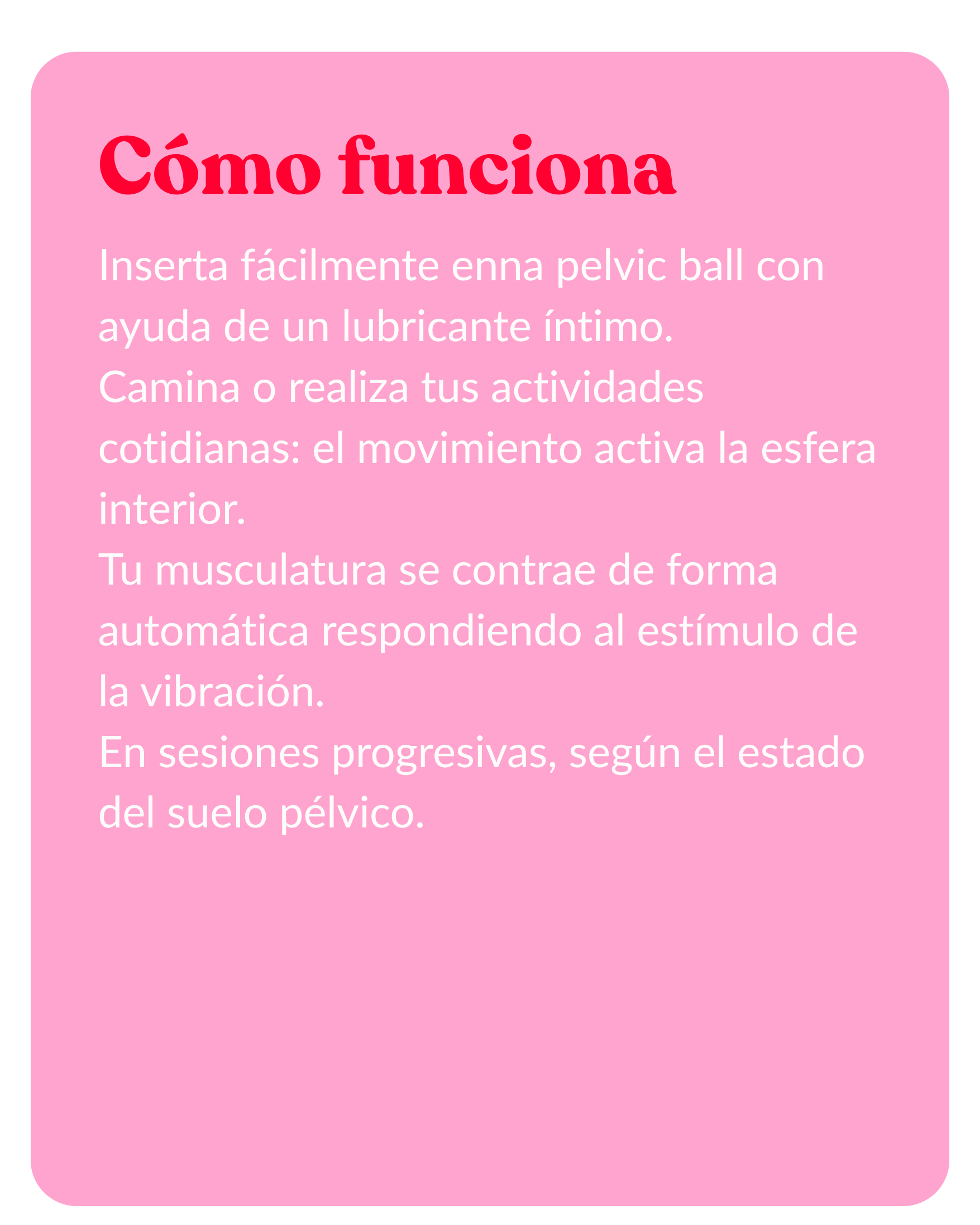 Enna pelvic ball incorpora una esfera interior con forma de diamante irregular patentada, que se activa con tu propio movimiento.